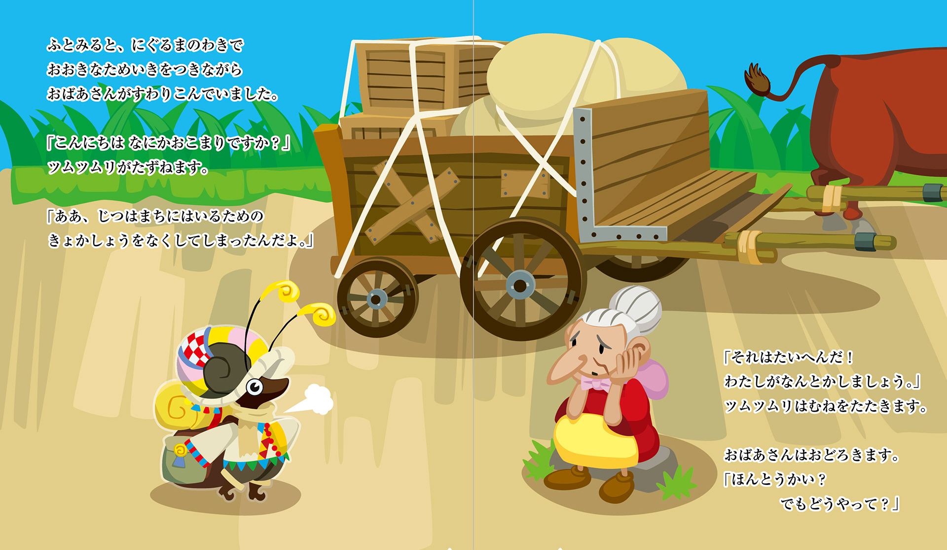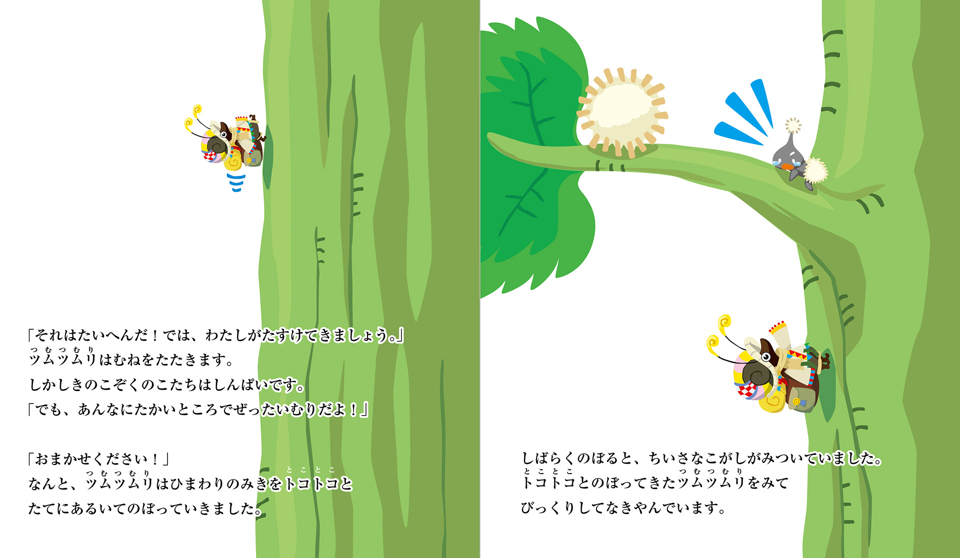 オリジナル絵本『ツムツムリ』と、その世界観のイラストです